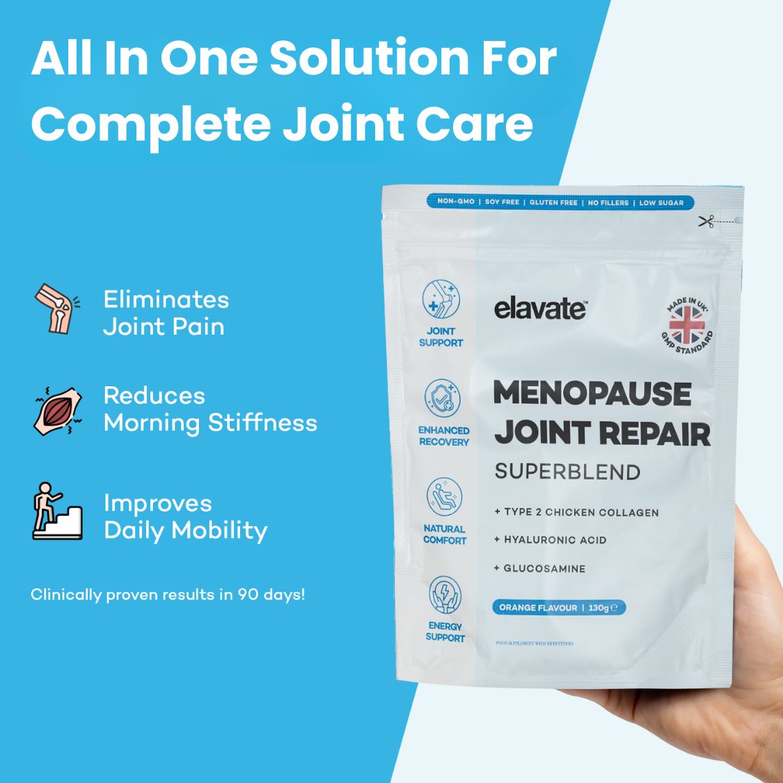 Here at Elavate, we make sure our customers love their product or we will refund 100% of their investment. We're so confident you'll enjoy Menopause Joint Repair that we'll bear all the risk.